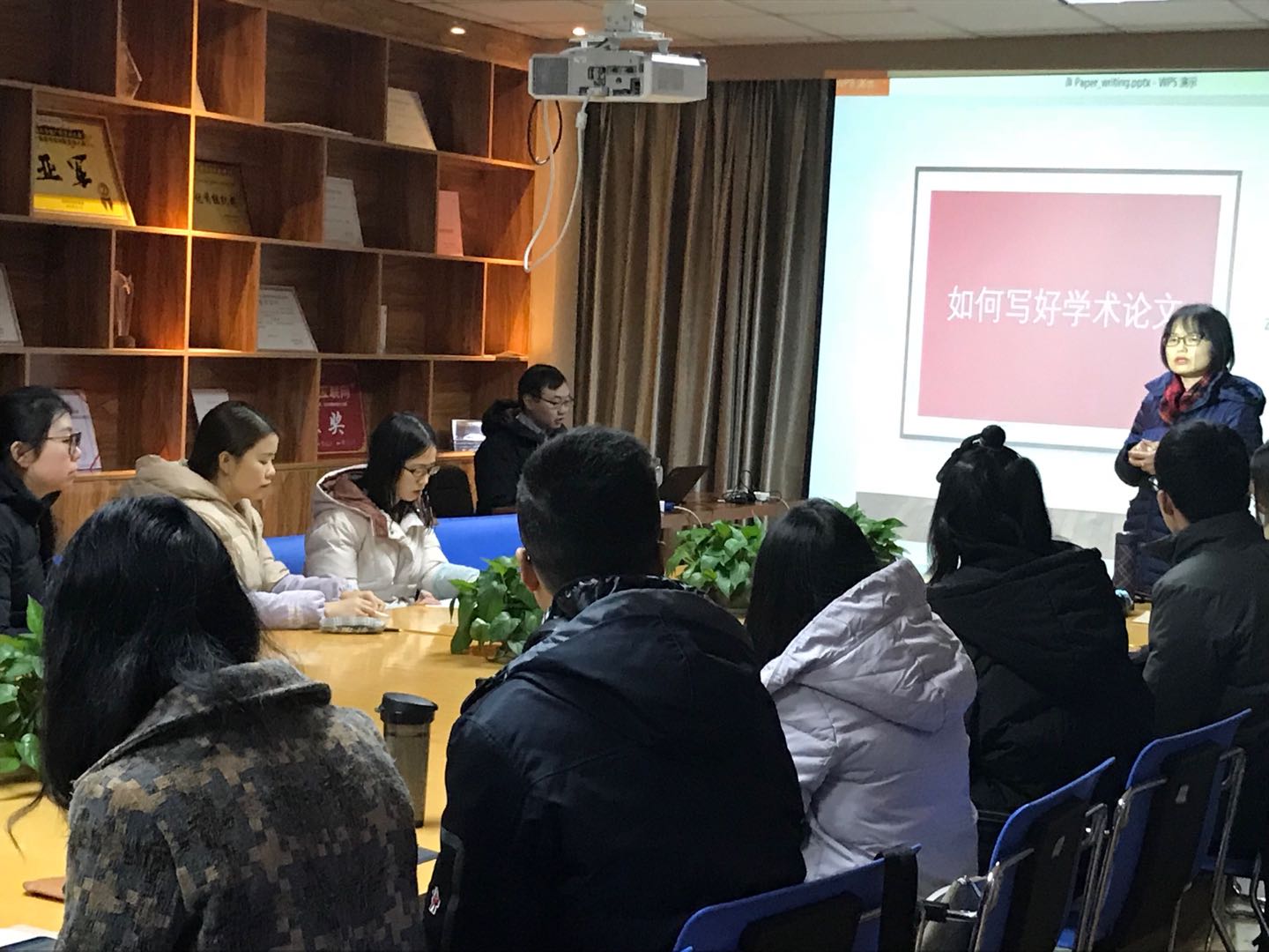 上午10:00,张老师在管理学院致远楼创客中心会议室向管理科学与工程专业部分老师及同学分享如何写好学术论文。张老师首先从优秀的科研工作、严谨的框架、优美的行文、坚持以及学术及交流四个方面介绍了如何写好学术论文,接着,就每方面展开阐述,并就重点和注意问题进行了详细的讲解。他强调了研究创新的重要性,强调要写好摘要、引言及文献综述以及要灵活运用数学进行结果验证。