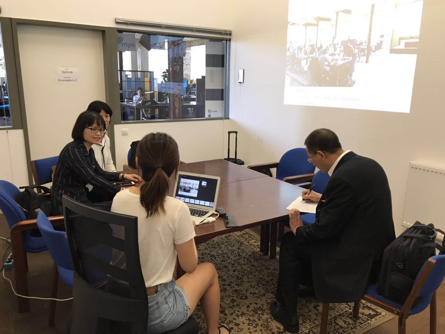6月22日上午,访问团与该校商学院亚洲事务联络人Yabo Qian女士交流了国际化课程教学事宜,并观摩了该校老龄化城市发展研究组的Joost VanHoof 教授的学术研究报告。
