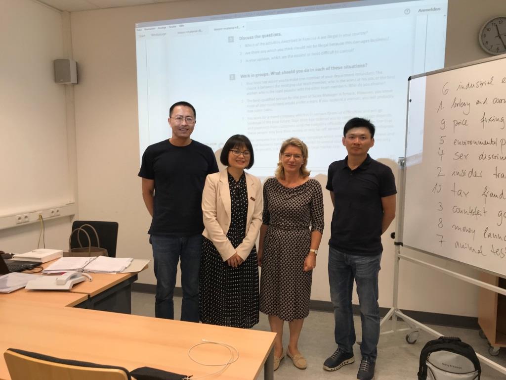 6月18日上午,管理学院访问团观摩了该校《国际商业伦理》的课程教学,并在课后与授课老师讨论了国际化课程教学方案设计等问题。