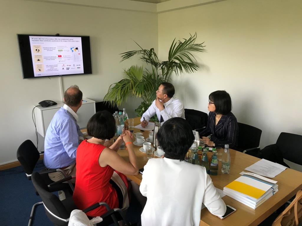6月17日下午,访问团来到路德维希港大学本部,路德维希港大学副校长Prof. Dr. Edith Ruger-Muck接见我院访问团,双方介绍了本学院概况,并就学生交换、师资互访和科研合作做了沟通交流,双方在三方面的合作上达成了初步的意向,但具体事宜需进一步协商。访问团与该校副校长Prof. Dr. Edith Ruger-Muck继续就与贵州大学波罗的海区域研究中心进行科研合作进行了探讨,并参观了路德维希港大学本部校舍及实验室。