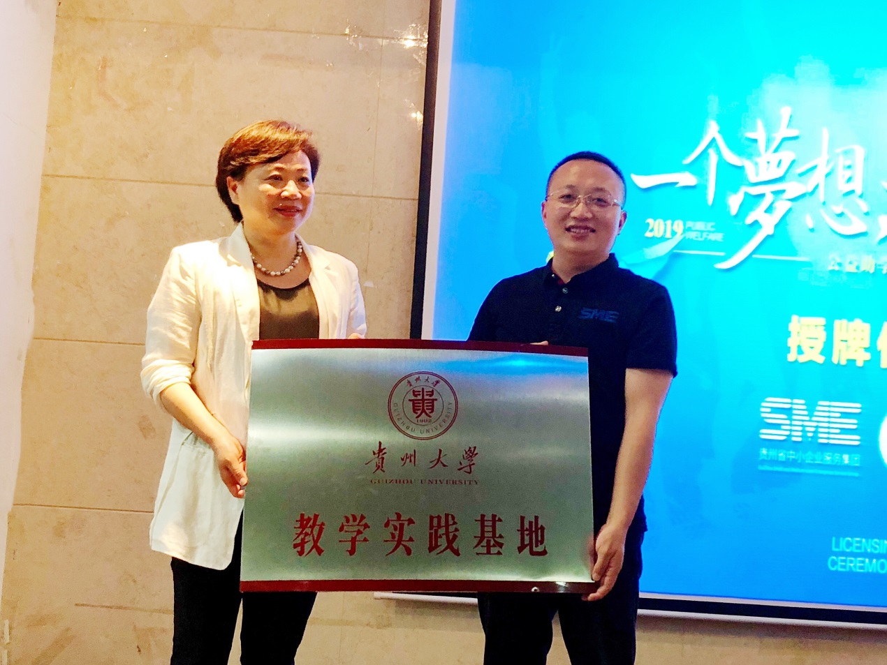 为丰富贵州大学教师和学生的实践实习基地资源,促进产学研相结合,强化大学生实践能力,7月17日,贵州大学与贵州省中心企业服务集团签订了校企合作战略协议并举行了实践基地授牌仪式。同时为帮助和激励贫困、优秀学生学习,贵州省中小企业服务集团百万助学计划(简称SME公益)在贵州大学正式启动。北京大学法学院房地产法中心主任楼建波,贵州大学党委副书记令狐彩桃、对外合作处副处长(主持工作)刘颖、资助中心主任赵祥伦、教务处副处长林益、大数据与信息工程学院党委书记刘剑、管理学院党委书记王秀峰、管理学院院长李烨,副院长王婷、周莉莉、宋山梅,贵州财经大学大数据应用与经济学院副院长时宏远,贵州省中小企业服务集团监事长刘川、董事长谢志楹、副总裁孙大奎、市场部总监郭肖及百名学生,共同见证了此项开创性公益活动。